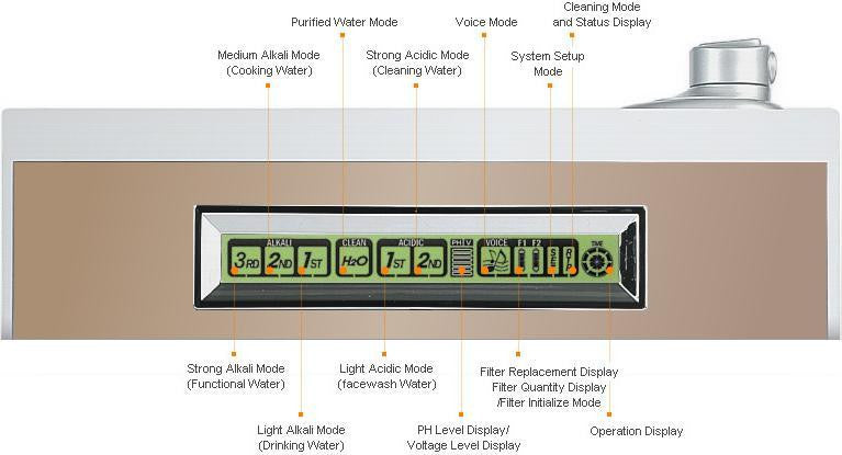 - Filter Change Display: Voice message and LCD icons indicate filter changes.